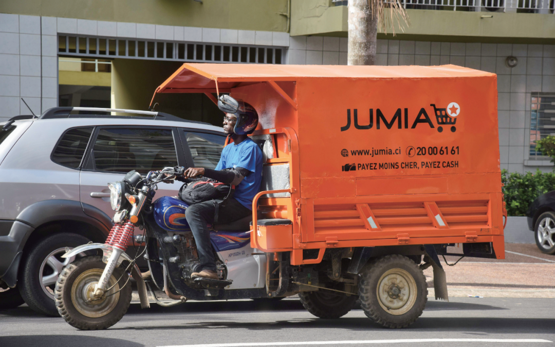 尼日利亚,送货员驾驶着印有电商网站Jumia广告的货车