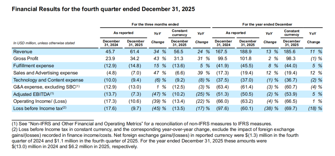 2025年12月31日第四季度财务报告/图源:Jumia在2026年2月10日发布的最新财报截图